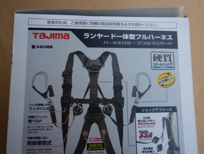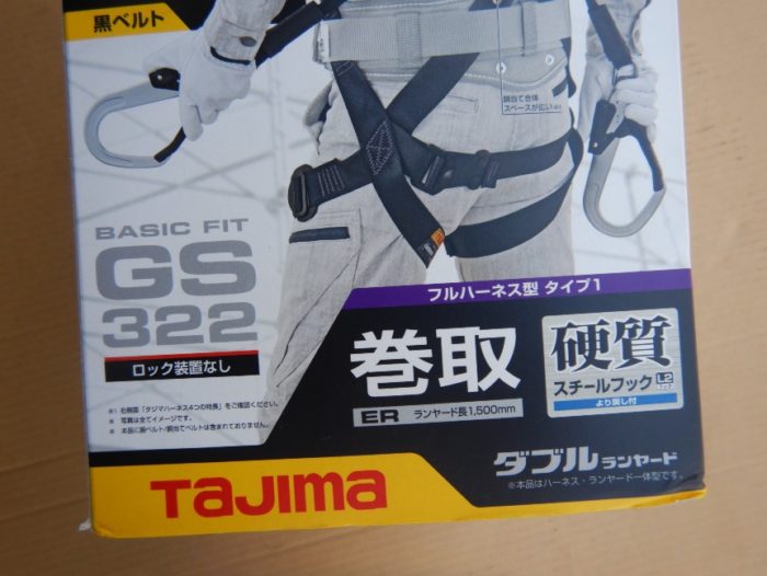 「販売終了いたしました」未使用品 タジマツールフルハーネス安全帯 ER150巻取式ダブルランヤード付A1GSMER-WL2BK GS322 Mサイズ