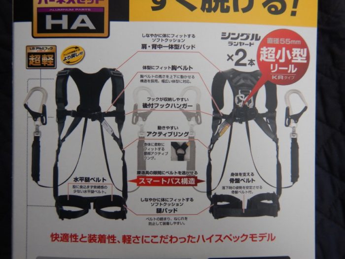 腰道具をつけたままフルハーネスの着脱が可能
