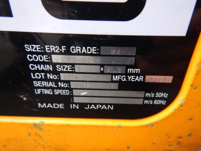 巻き上げ速度5.7m/6.8m分 周波数50/60Hz 出力2.5kw 2012年製造