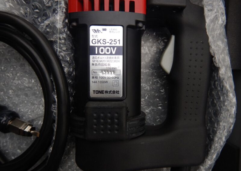 トネ トルシアボルト一次締め用工具 建方一番 GKS251① 100V ソケットM16 M20 M22用 テスト済 キズ汚れ有 未使用保管品