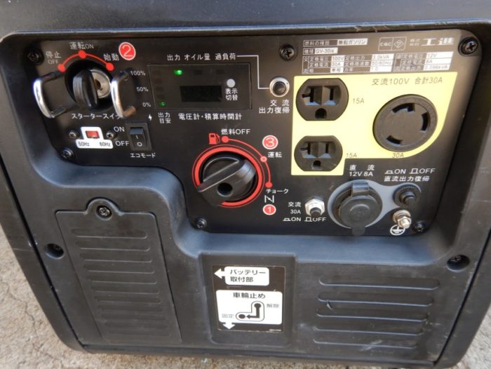 使用時間378時間 出力電源100V 周波数50/60Hz切り替え式 出力3,0KVA 3000W