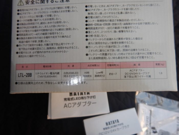 ハタヤ 充電式LED吊り下げライト LTL-20B リチウムイオン7,4V LED20W 未使用品