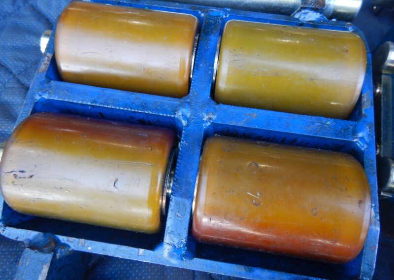 「販売終了いたしました」中古良2台/未使用2台 4台組 マサダ 重量物運搬ローラー MUW-2S 使用荷重2t ウレタンローラーダブル型