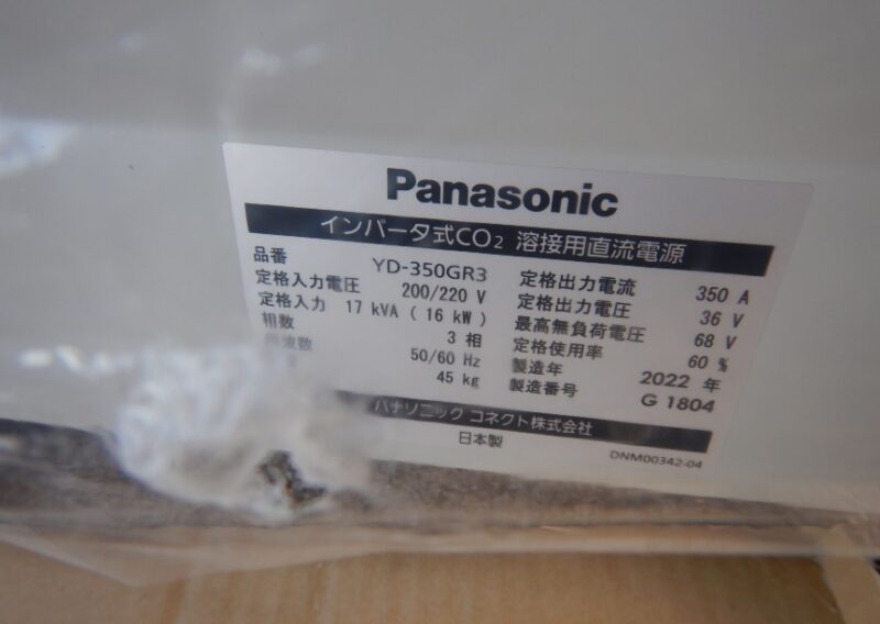 Panasonic フルデジタル半自動溶接機 YD-350GR3 350A 未使用品 YT-35CE4トーチ付セット