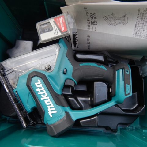 「販売終了いたしました」中古程度良 マキタ 充電ボードカッター SD180DZ 18V対応本体、プラスチックケースのみ