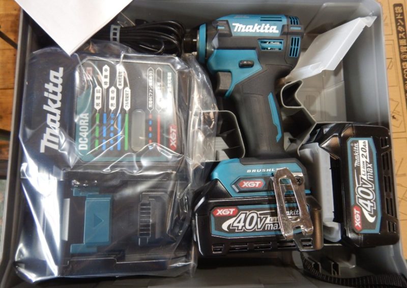 マキタ 充電インパクトドライバー TD003GRAX 40VMAX2,0Ah予備電池付セット 最大トルク210Nm 未使用品 33000円で買取させていただきました。