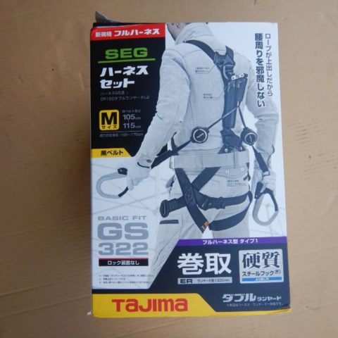 タジマツールフルハーネス安全帯 ER150巻取式ダブルランヤード付A1GSLER-WL2BK GS322 Lサイズ 未使用品 買取させていただきました。